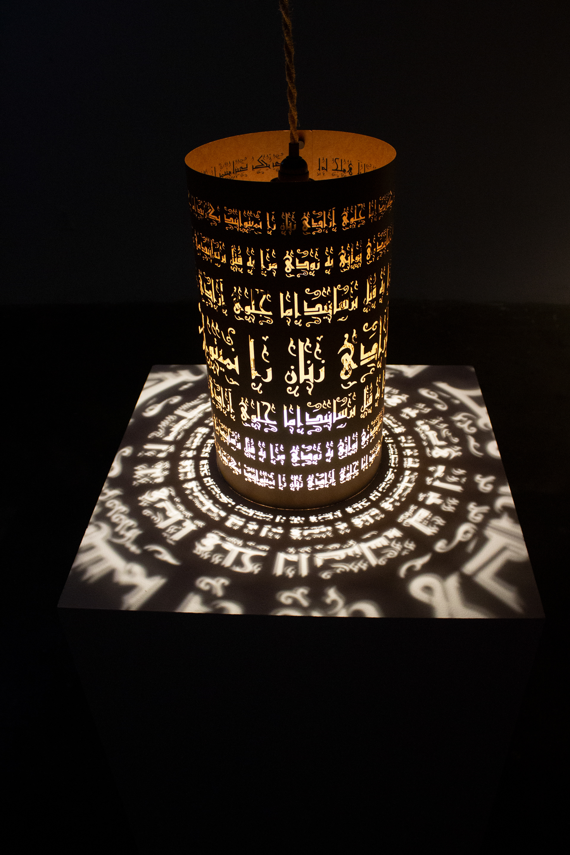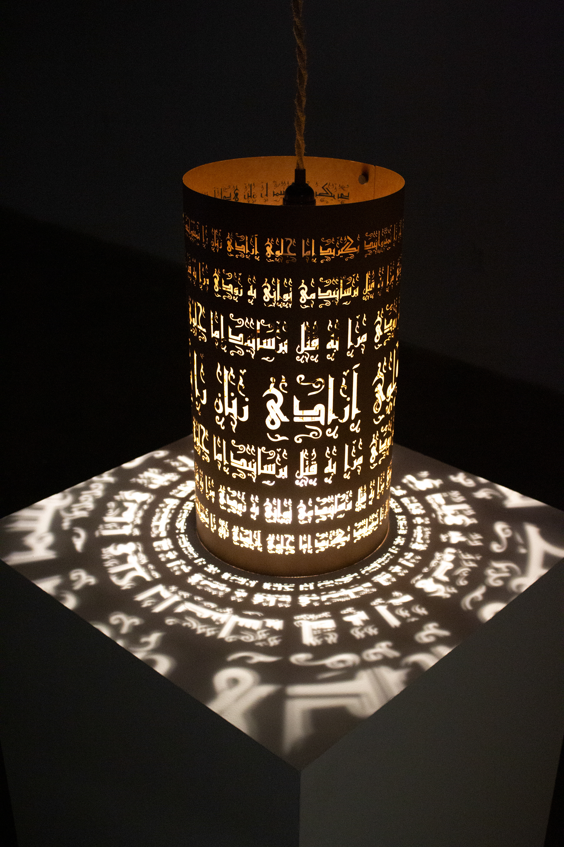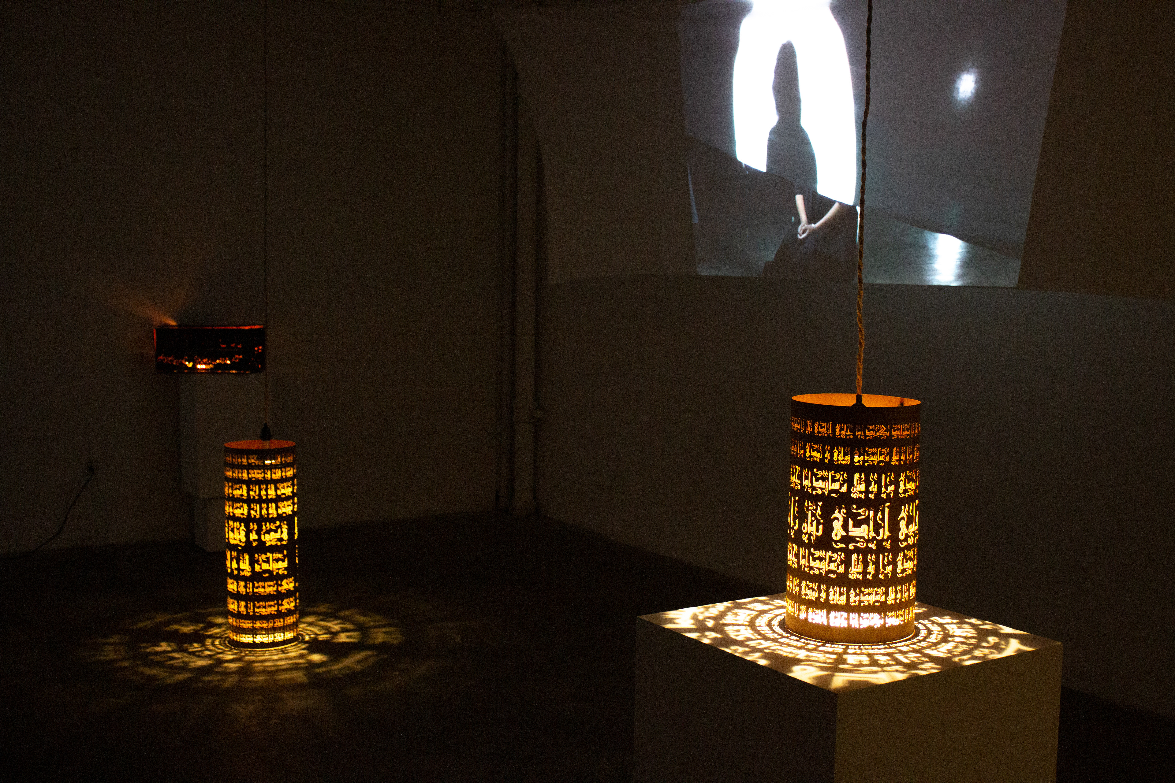 Light instalation illuminating Persian and religious feminist's final words: